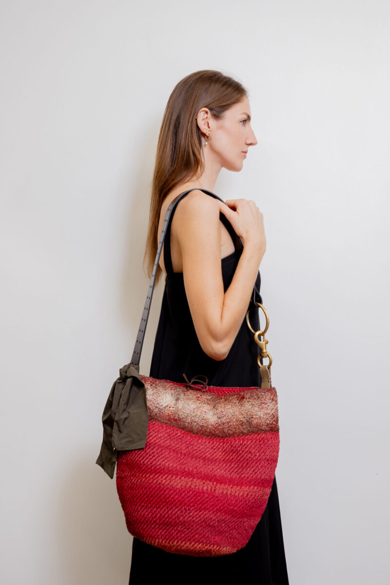 La Mochila Caoba es una obra única tejida por la comunidad Uitoto con fibra de Chambira y posteriormente intervenida con bordajes sobre tela exclusiva de la marca. Esta versión incorpora una sola correa en cuero natural de 33 cm que enmarca su diseño sobrio y refinado. Una joya cultural que equilibra tradición, diseño y sofisticación.